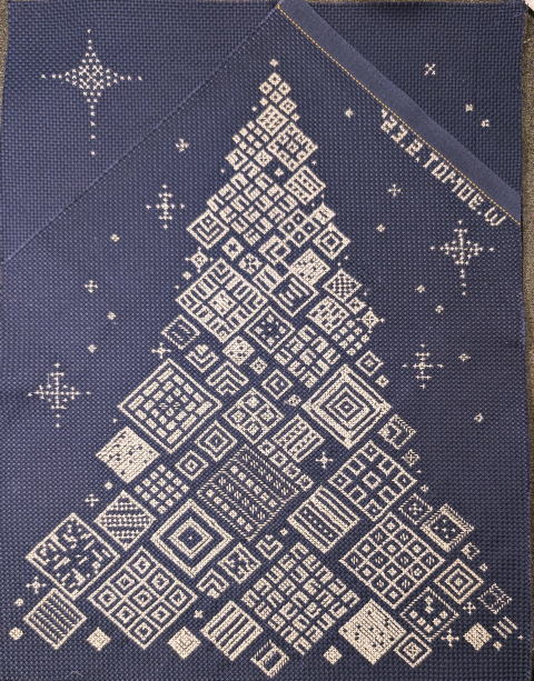 | 2023年9月29日 金 work8【tree №3】 完成 11-18鳥追加 3本どり緑全10色 残糸 |