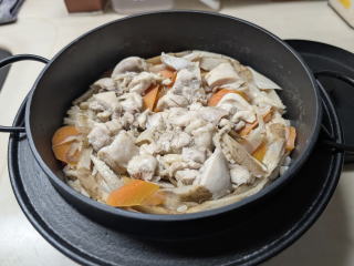 鉄釜で、混ぜご飯作って見ました。味が薄かったので次回の材料を書きます。材料:古米2合、もち米1合、人参半分、ごぼう小1本、鶏もも肉200g、調味料:酒大さじ3、醤油大さじ2、塩小さじ1、出汁1カップ、水2カップ。 |
